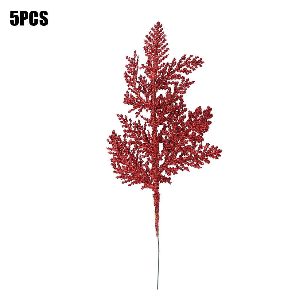 5/1Pcs Glitter Gold Artificial Cypress Leaves Xmas Tree Hanging